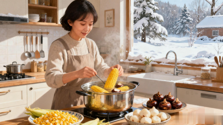 甜玉米剥粒,玉米芯千万别扔(清甜灵魂就在这)!加水煮20分钟熬出精髓,再放进去皮拍碎的马蹄丁,小火煮15分钟就搞定。老辈人说马蹄是“天然润燥妙品”,清热生津还不寒凉,配着玉米的自然甜,煮出来的水甜丝丝、清润润。我家娃每天放学吨吨吨炫两大杯,再也不喊嘴巴干,比饮料健康10倍!