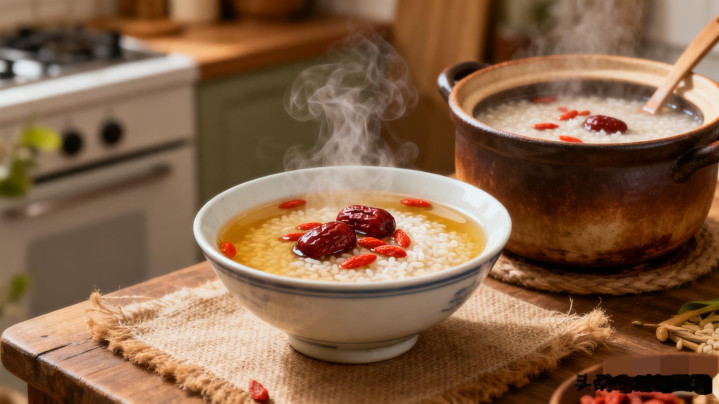 大米淘洗干净加足量清水,大火煮开转小火慢熬,等粥变得黏糊糊,最上面那层泛光的米油就是灵魂!撇出来加3-4颗去核红枣、一小把枸杞,焖5分钟就能喝。米油滋阴润燥,红枣补气、枸杞明目,我妈现在每天早上必喝一碗,说喉咙润润的,说话都有劲了,干痒咳嗽的老毛病再也没犯过,比参汤还养人~